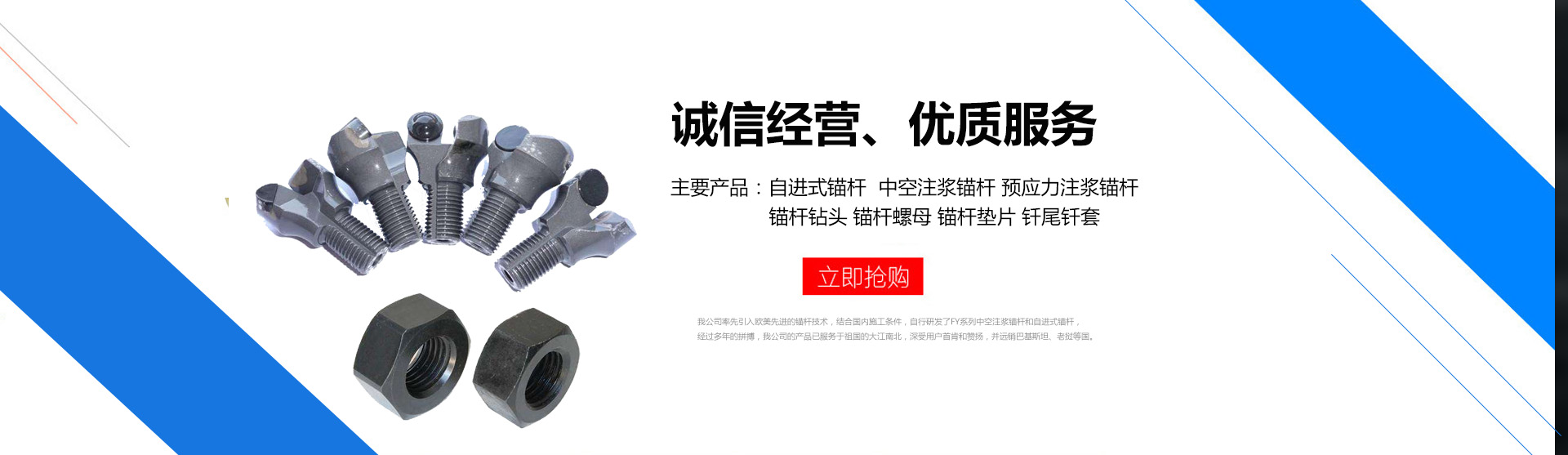 我公司結合國內施工條件,自行研發了FY系列中空注漿錨桿和自進式錨桿,經過多年的拼搏,我公司的產品已服務于祖國的大江南北,深受用戶首肯和贊揚,并遠銷巴基斯坦、老撾等國。